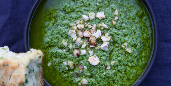 - Visas sastāvdaļas, izņemot olīveļļu, liek blenderī un samaļ viendabīgā masā.