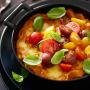- Palielā pannā uz sīkas liesmas uzkarsē apmēram 4–5 ēdamkarotes olīveļļas (tā, lai pamatne kārtīgi noklāta ar eļļu). Pievieno rozmarīna lapiņas un, ik pa brīdim apmaisot, apcep apmēram minūti: līdz tās kļūst kraukšķīgas, bet eļļa – aromātiska.
