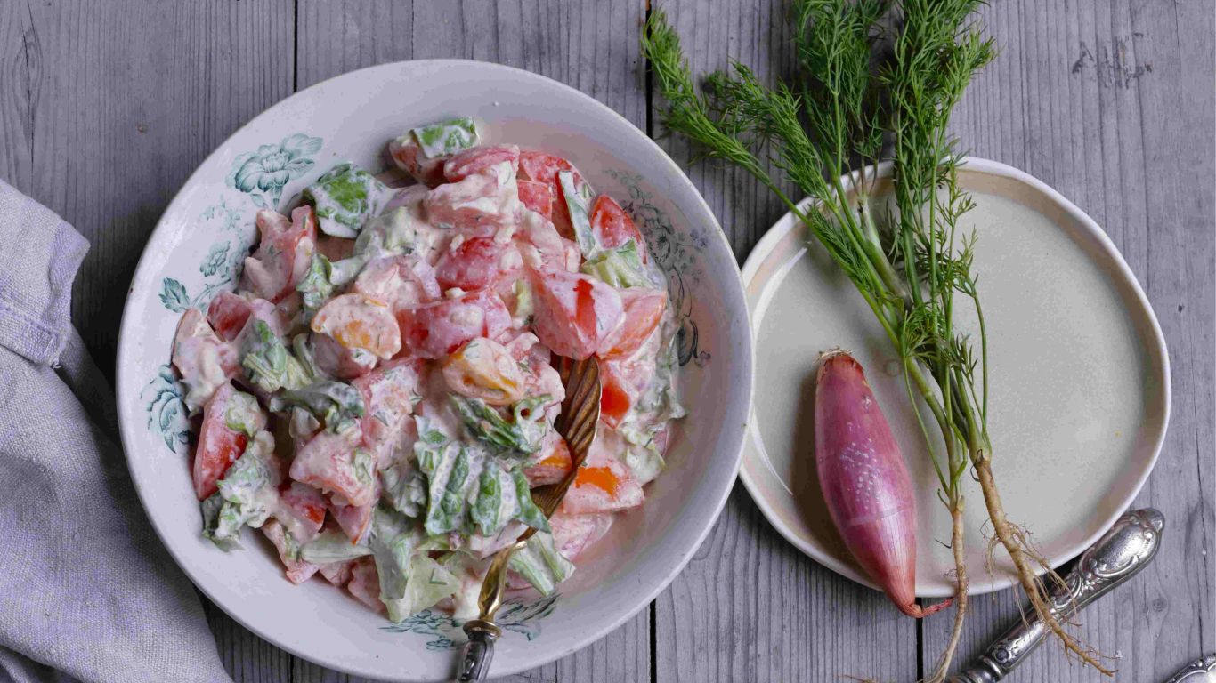 Tomātu salāti ar krējumu latviešu gaumē. Tik garšīgi!