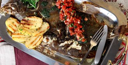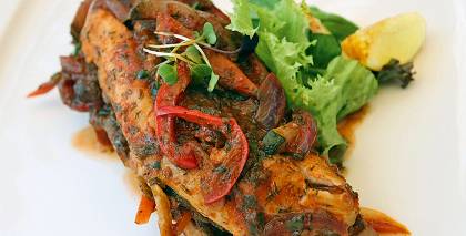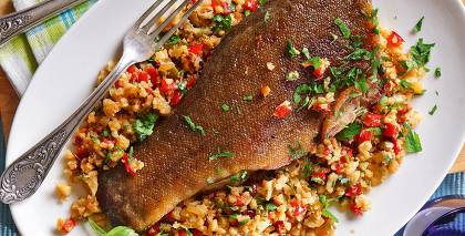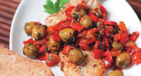 Krāsnī cepta zivs ar citronu, kaperiem un rīsiem