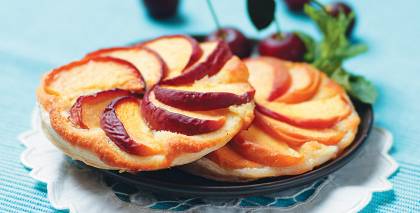 - Ceptajiem persikiem virsū liek mīklas pikas, tad liek atpakaļ krāsnī un cep vēl 15 minūtes, līdz mīklas cepumi izcepušies zeltaini.
