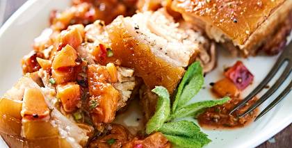 - Persiku maisījumu liek ietaukotā cepampannā, virsu pārliek ar sviesta piciņām.