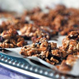 ! Vēl karstu sagriež un atstāj pannā atdzist. Jāsagriež tāpēc, lai iegūtu vienādus gabaliņus, jo atdzisuši karamelizētie cepumi būs sacietējuši un tos varēs salauzt, ne sagriezt.