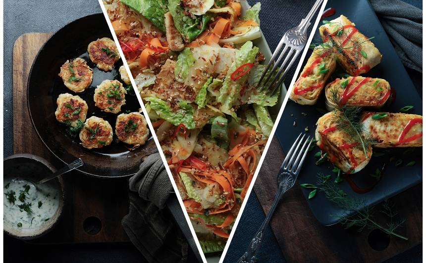 Lavaša rullīši ar viltotajiem siera salātiem