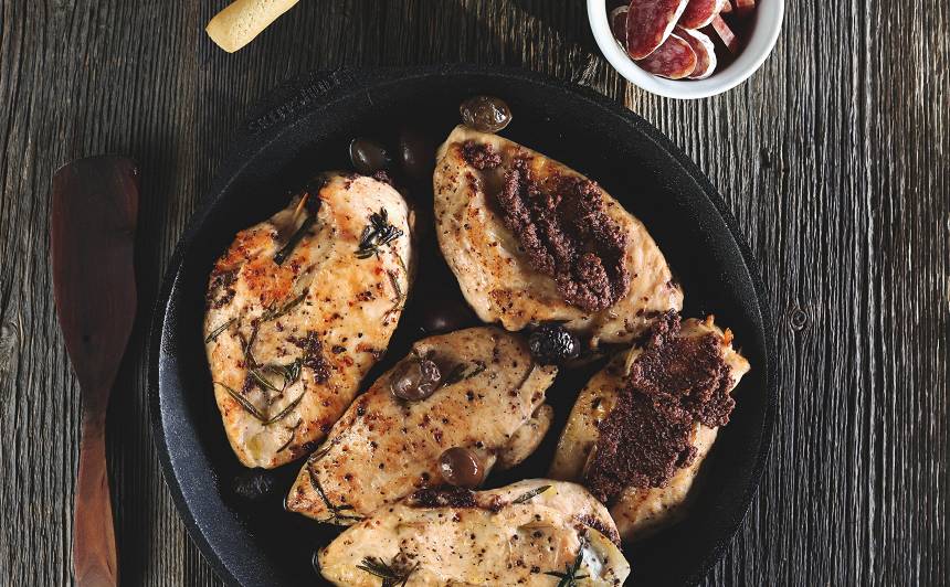 - Labāk izvēlēties olīvas sālījumā un ar kauliņiem. Kauliņus viegli var izņemt šādi – uz liela dēlīša katru olīvu ar platu nazi saspiež, tad izņem kauliņu.