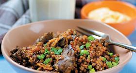 - Pārkaisa sāli un piparus, garšaugu maisījumu, apmaisot visu cep 10–15 minūtes, līdz dārzeņi mīksti un vistas gabaliņi izcepušies.