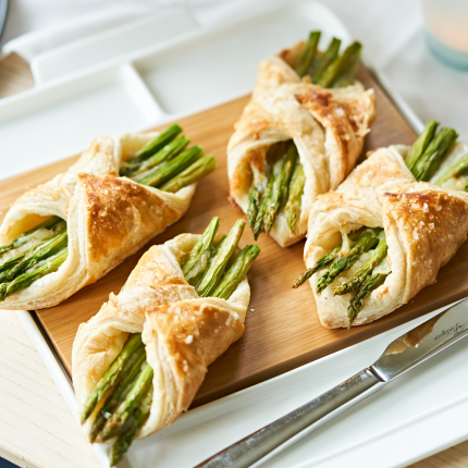 - Sparģeļiem nolauž cietos galus un sagriež gabalos, 6 galotnītes atliekot greznošanai.