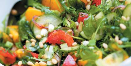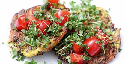- Zirnīšus atlaidina un noblanšē. Dīgstus un sniega zirņu pākstis rupji sakapā. Pasniedz sajauktus ar mērci.