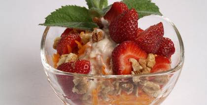 - Mērci atdzesē un pasniedz ar zemeņu olbaltuma saliņām.