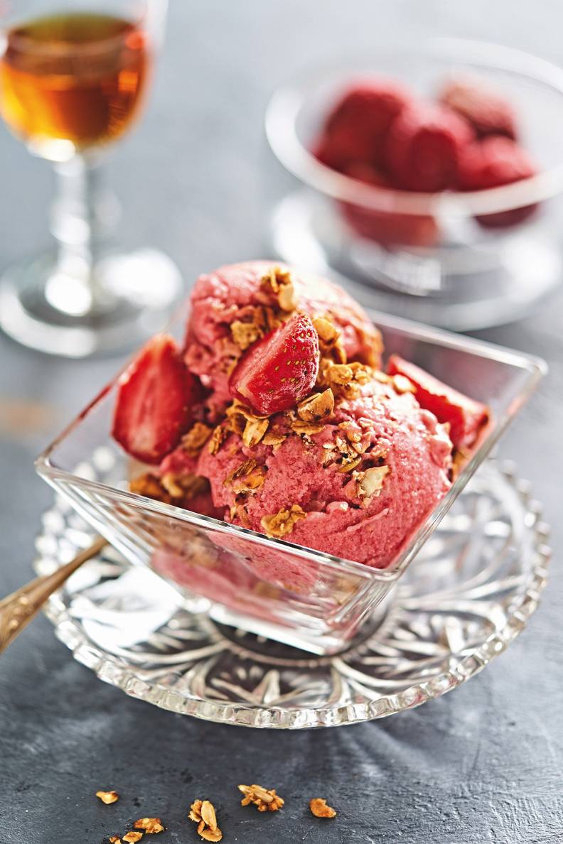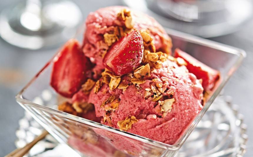 Zemeņu un banānu saldējums ar riekstiem – ātri pagatavojams našķis bez grēka sajūtas