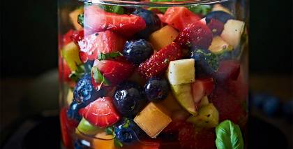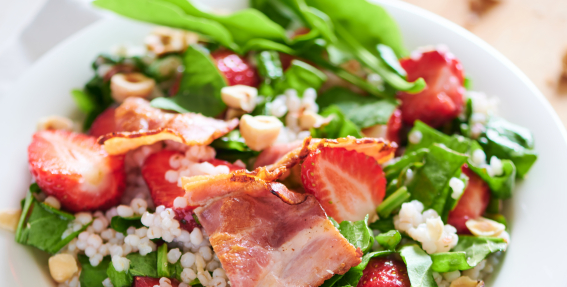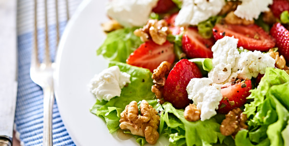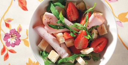 - Virspusē liek mini mocarellas bumbiņas un veselas zemenes vai to pusītes.