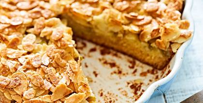 Ābolkūka ar mandeļu skaidiņām no kārtainās mīklas. Tik kārdinoša un kraukšķīga, taču bez piena poduktiem un olām!