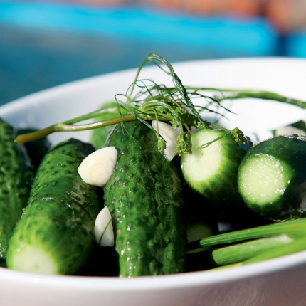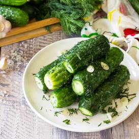 - Gurķiem nogriež galus un ar mīklas rulli parullē, lai nedaudz pašķīst un sāk suloties.