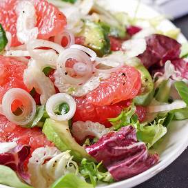 Greipfrūtu salāti ar vītinātu šķiņķi