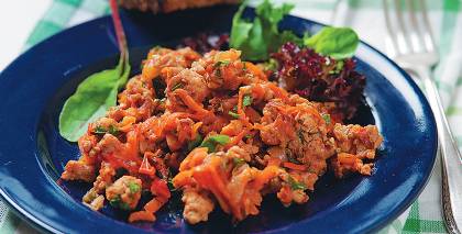 Maltā gaļaar ķirbīti, papriku un sīpolu. Ātri, gardi un veselīgi – šis ēdiens būs sātīgs, taču ne smags, arī kaloriju šeit nav daudz. ideālas fiksās vakariņas ģimenei! Demokrātiski arī izmaksu ziņā.