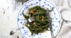 Veselas, nesasmalcinātas lapas liek bļodā, pārkaisa ar palielos gabalos sadrupinātu biezpienu, pārslaka ar olīveļļu un pievieno sāli pēc garšas.