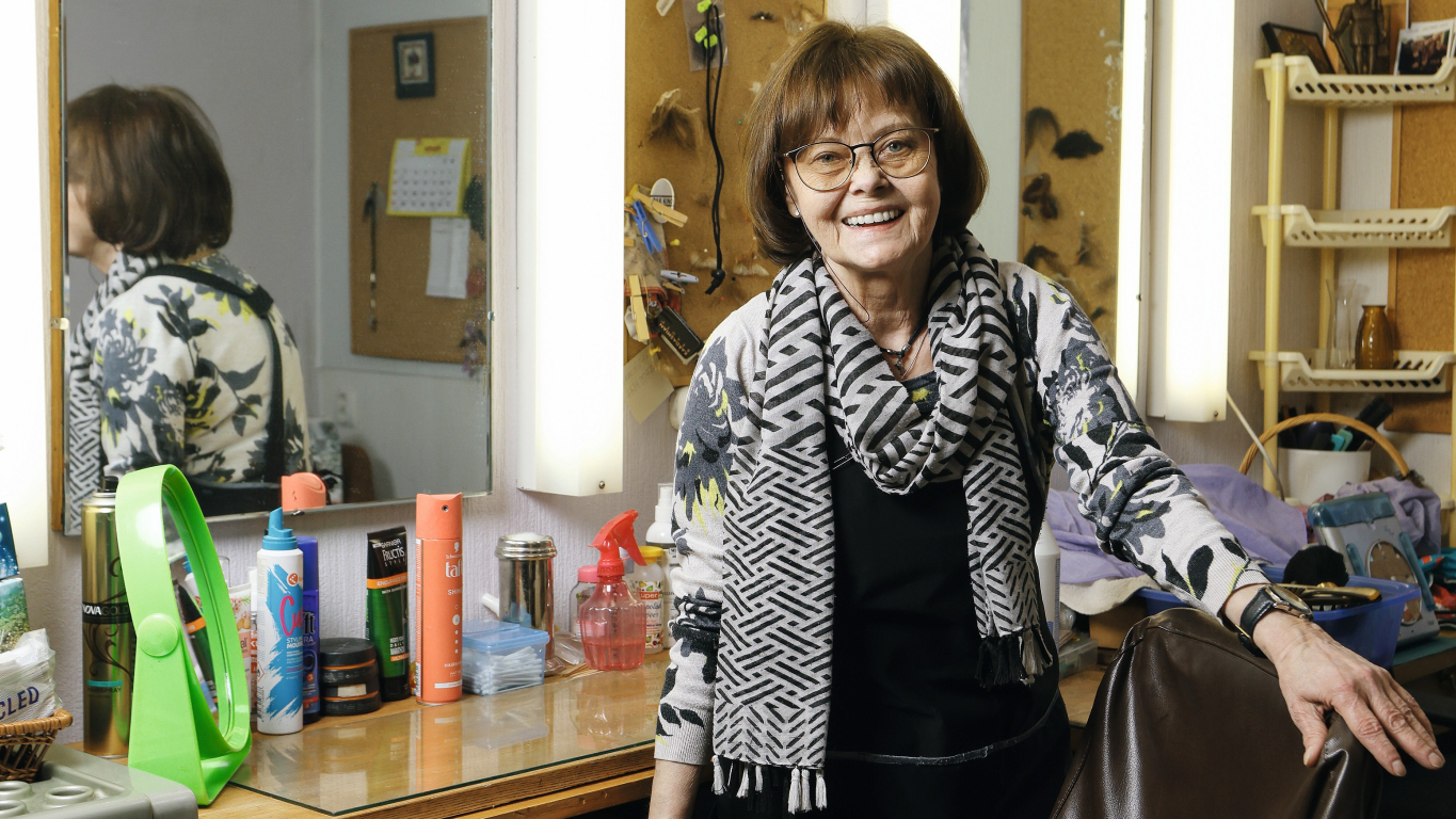 Kinostudijā ienācu brīdī, kad Jānis Streičs filmēja Teātri. Filmas galvenā grima māksliniece Rasma Prande (saukta Šarls) paņēma mani sev pie kājas. Tas nozīmē – profesiju mācījos, staigādama viņai līdzi, nesot viņas krāsu somu un ķeblīti, uz kā apsēsties. No grima es neko nezināju. Biju beigusi frizieru skolu, strādājusi frizētavā. Pār plecu vēroju, ko Šarls dara, un padevu viņai otiņas. Ar laiku man atļāva grimēt aktieriem rokas, tad arī sejas masu skatu dalībniekiem. Kad filmēja lielo Džūlijas Lambertes balli, palīgā paņēma vēl citas grimētājas un es tiku pie frizūru veidošanas. Šarls ar matiem nedarbojās. Es biju grimētāja, kas strādāja arī ar matiem. Teātrī dāmām vajadzēja trīsdesmito gadu ondulācijas. Artmanes Džūlijai bija uztaisīta parūka.