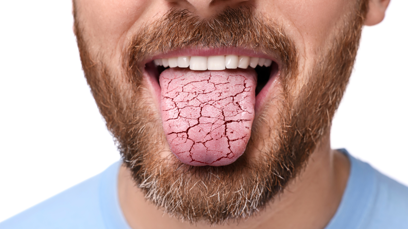 - Nepietiekams siekalu daudzums – siekalas ir svarīgas, jo mitrina gļotādu un neļauj tai plaisāt, gūt traumas, piemēram, lietojot protēzes, ēdot cietu ēdienu. Siekalas arī aizsargā zobus no bojāšanās, jo satur pretmikrobu fermentus.