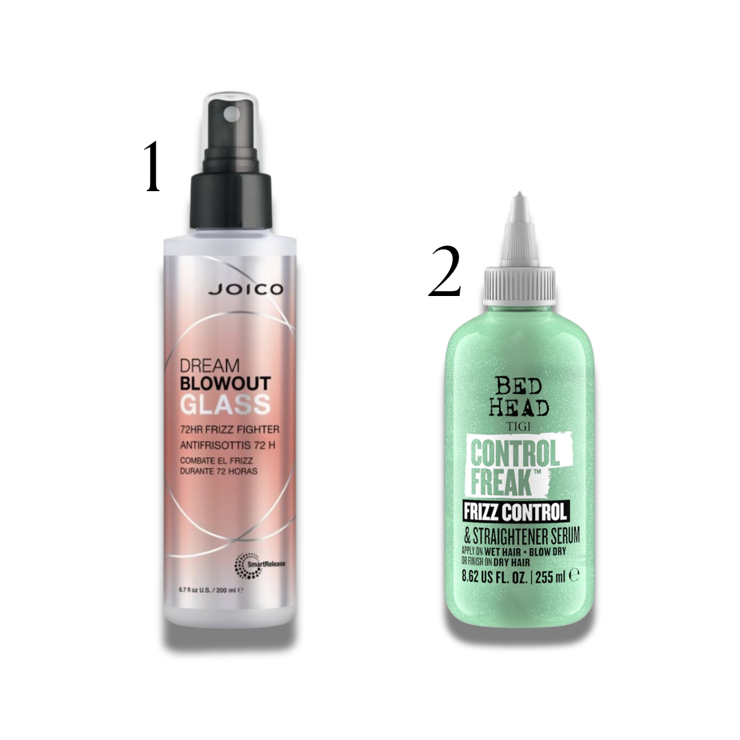 - JOICO Dream Blowout Glass 72Hr Frizz Fighter izsmidzināms līdzeklis. Aizsardzībai pret karstumu līdz 204 °C un pret matu sprogošanos, palīdz saglabāt tos gludus līdz pat trim dienām, arī mitrā laikā. Jūras aļģes, augu eļļas un keratīns piešķir matiem spīdumu. Cena: 200 ml – 34,90 eiro, salonshop.lv, douglas.lv.