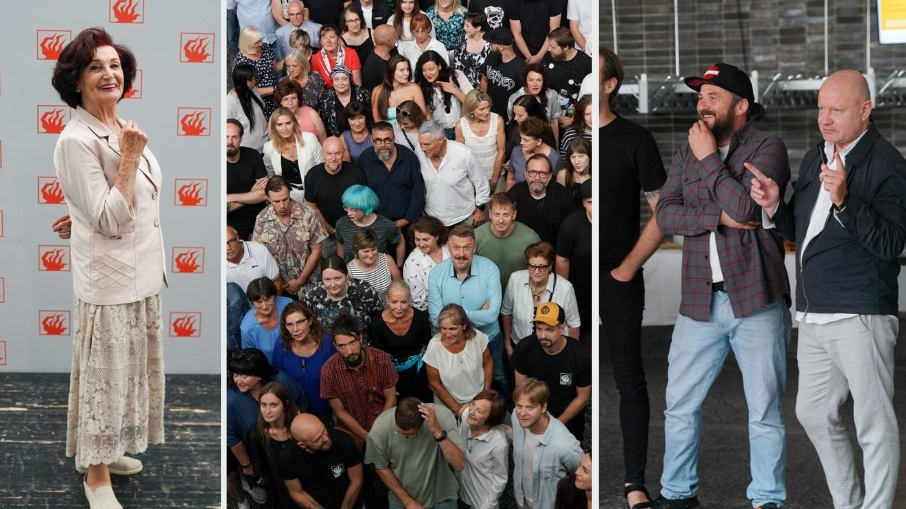 Fotogrāfs Jānis Deinats jau atkal meistarīgi satilpināja Dailes teātra kuplo kolektīvu vienā košā kopbildē. Tas nav viegls uzdevums, jo dailēniešu pulks kļūst arvien lielāks, un atkalsatikšanās prieks rada lielu, līksmu kņadu.