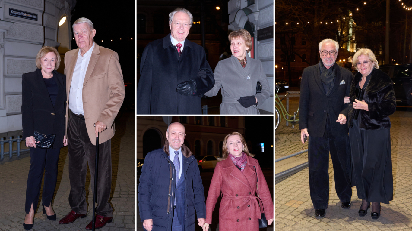 Pirmizrādes viesu vidū bija gan bijušais Valsts prezidents Valdis Zatlers ar kundzi Lilitu, gan LMT vadītājs Juris Binde ar sievu, Teātra darbinieku savienības vadītājs Ojārs Rubenis ar laulāto draudzeni Viju, kultūras ministre Agnese Lāce ar vīru Paulu, kā arī vēl vairāki augstākās sabiedrības pāri.