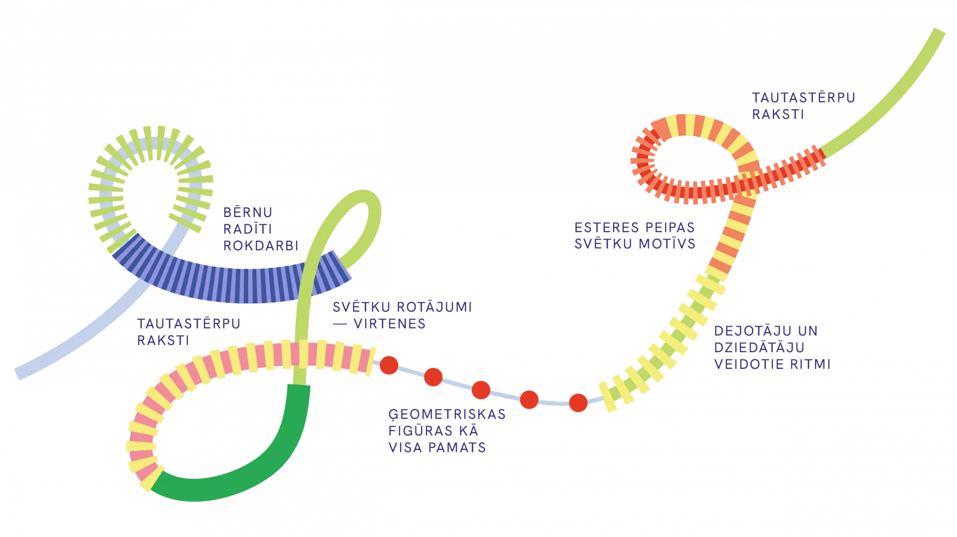 Saglabājot dalībnieku uznāciena vizuālo ritmu, iepriekš stalto burtveidolu Skolu jaunatnes svētkos aizstāj rotaļīgāks un brīvāks, tuvāks jauniešu būtībai un nepieradinātajam garam.
