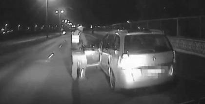 Pamanot policijas klātbūtni, tikko nozagtais BMW X5 steigšus iebraucis tuvējā stāvvietā, bet pasažieri uzreiz izkāpa ārā no auto.