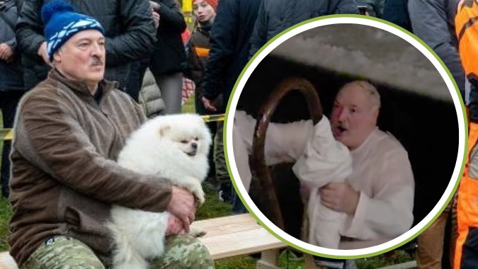 baltkrievus uzrunāja Lukašenko un, tērpies baltā naktskreklā, kopā ar savu klēpja sunīti špicu Umku apņēmīgi devās āliņģa virzienā. Umkas spalgo rējienu pavadīts, viņš uz pāris sekundēm iegremdējās āliņģī.