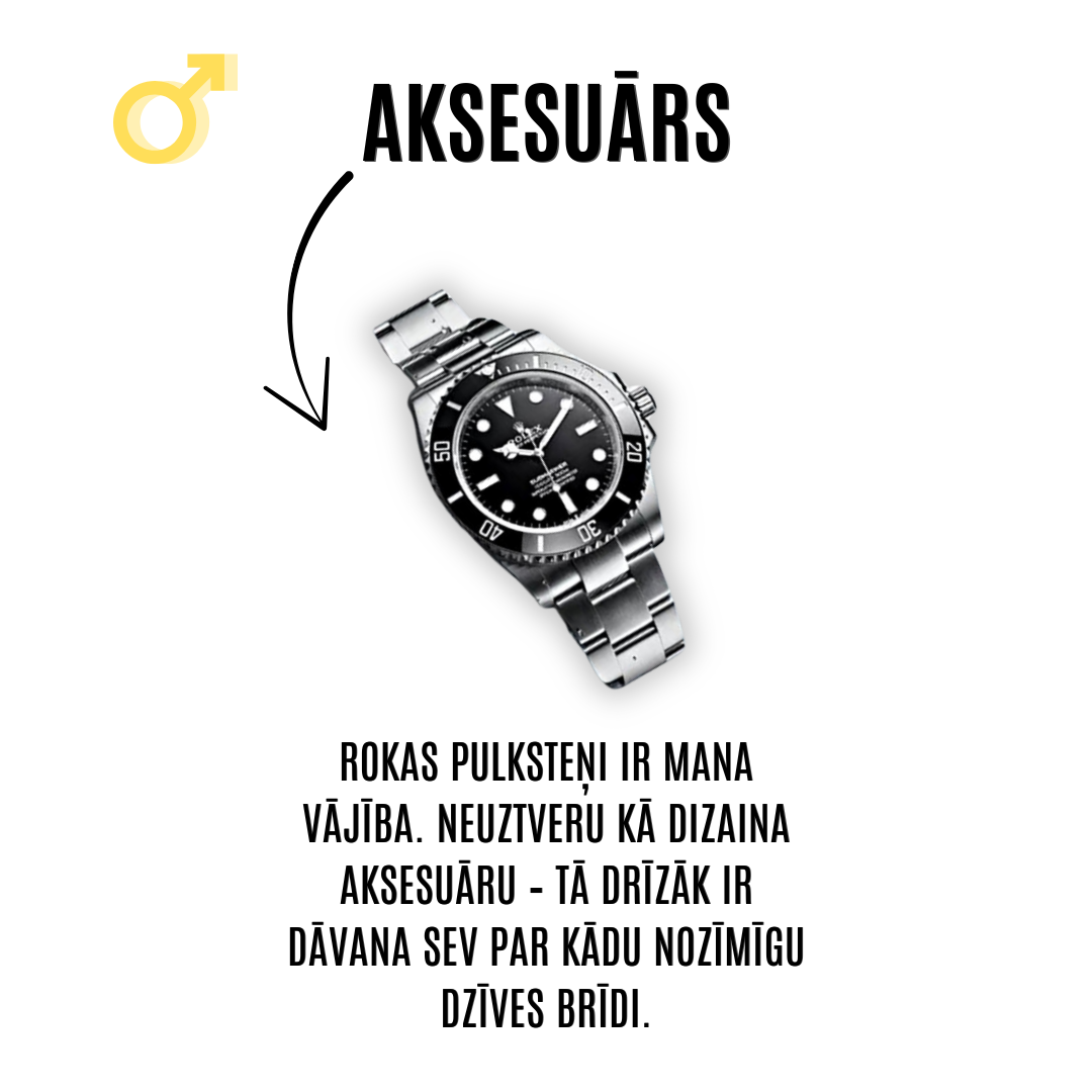 Rokas pulksteņi ir mana vājība. Neuztveru kā dizaina aksesuāru – tā drīzāk ir dāvana sev par kādu nozīmīgu dzīves brīdi. Kolekcijā ir kvalitatīvi Šveices mehāniskie pulksteņi, un, nēsājot tos ikdienā, novērtēju pulksteņmeistaru rūpību un uzmanību pret detaļām.