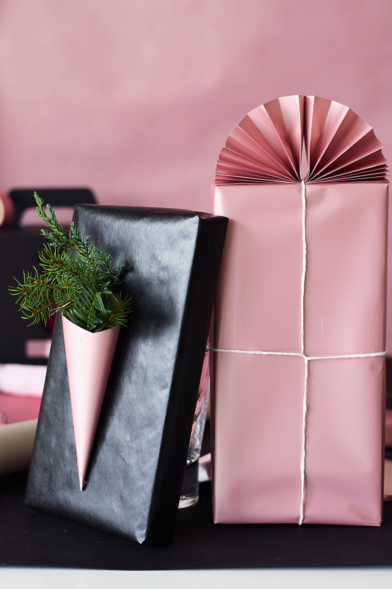 Veikalā Baltijas papīrs ir melnas krāsas kastu zelta bedre – visādu izmēru, formu un veidu. Izmanto košas vai gaišas lentes, krāsainas līmlentes, un saiņošana prasīs vien dažas minūtes.