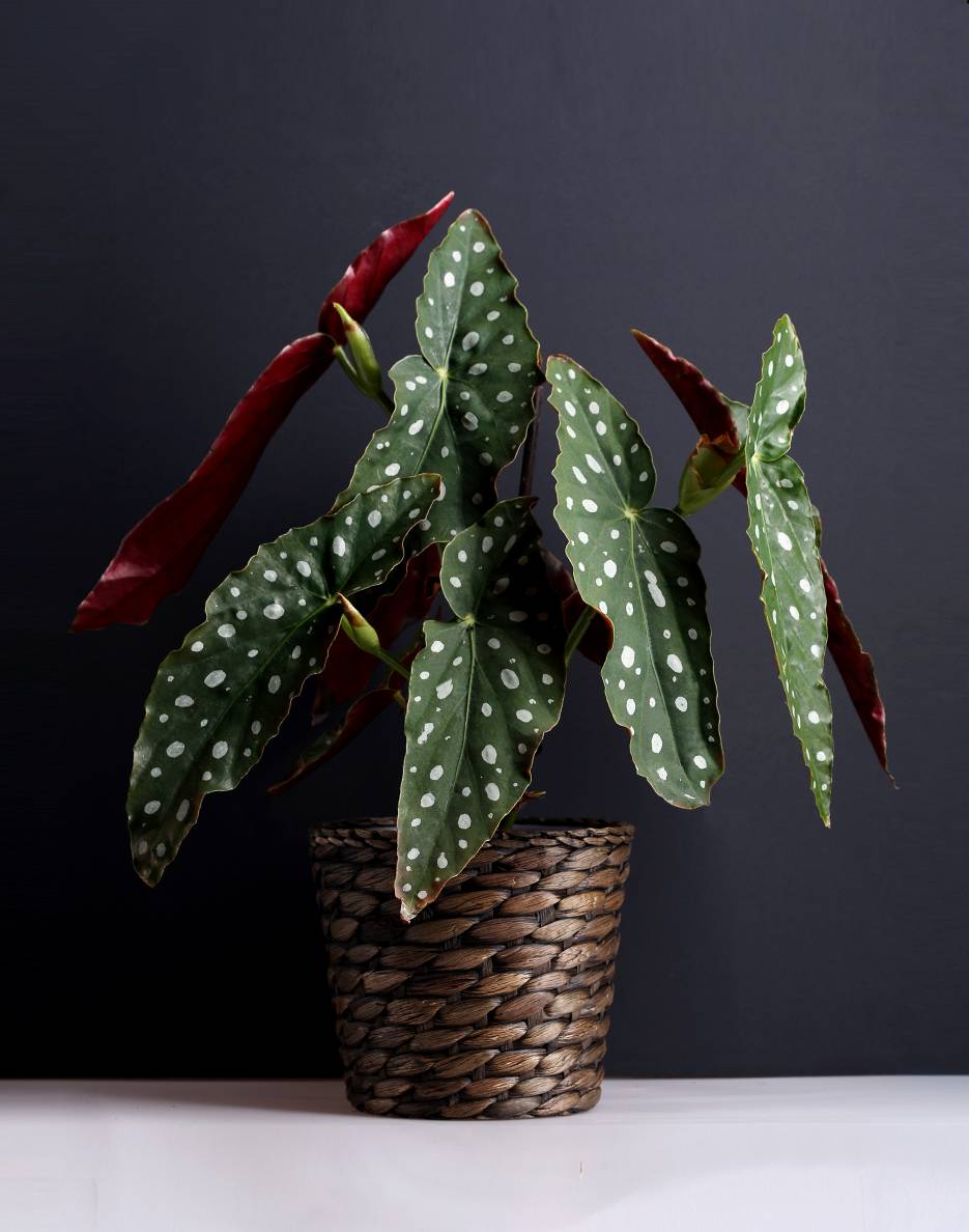 Punktainā begonija (Begonia maculata). Neparastas lapas, kas atbilstoši nosaukumam ir kā nosētas ar maziem punktiņiem baltā vai sudrabainā krāsā. Atkarībā no šķirnes lapas apakšpuse var būt zaļa, sārta vai violeta. Ziedoša. Kopšana līdzīgi kā karaliskajai begonijai, taču tai ir vēl plānākas lapas, tāpēc punktainā begonija ir jutīgāka pret sausu gaisu un caurvēju. Aug augstumā, ne platumā, tāpēc laikus jādomā par dziļāku podu, kurā ievietot atbalsta stabu. Nogriežot galotnes, veidosies sānu dzinumi un begonija augs kuplāka. Nogrieztās galotnes var apsakņot ūdenī.