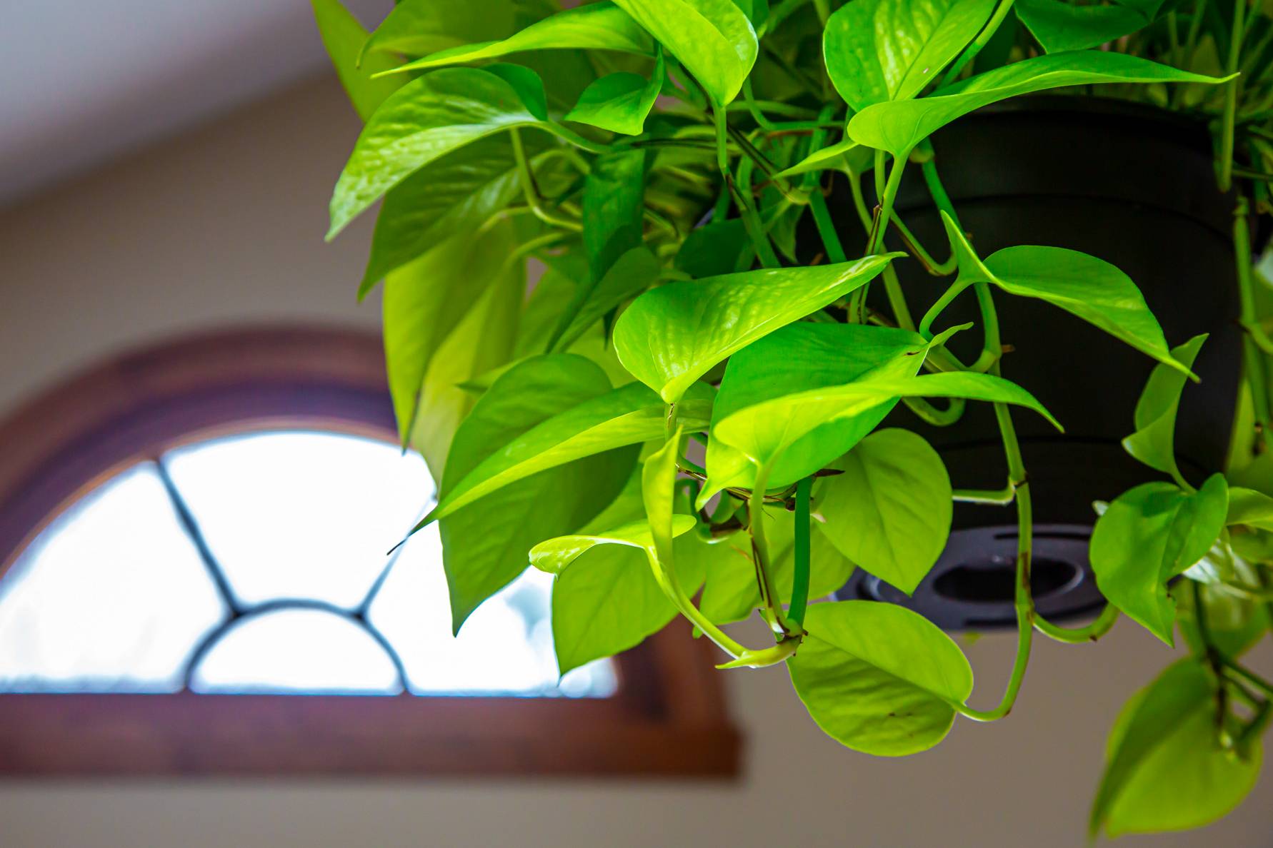 Zelta scindapsis (Epipremnum aureum). Nokarens augs, kas piecietīs gan gaišāku, gan tumšāku telpu, retu laistīšanu un dažkārt pat pārlaistīšanu. Ātraudzīgs, tāpēc vēlams apgriezt, lai veidotos kupla zaļā masa, ne tikai garas stīgas. Nogrieztās galotnes ir viegli apsakņot – tās var vienkārši iespraust zemē blakus pašam augam. Īpaša šķirne ‘Neon’ ar zaļu un dzeltenu krāsojumu.