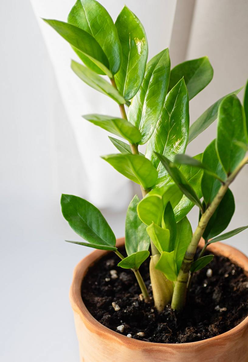 Zāmija jeb zamiokulka (Zamioculcas). Labi jutīsies kā saulainā, tā ēnainā vietā, necieš no sausa gaisa, arī kaitēkļu tām parasti nav. Daudz dažādu šķirņu, ir gan milži, gan punduršķirnes. Stringras, spīdīgas, izturīgas lapas.