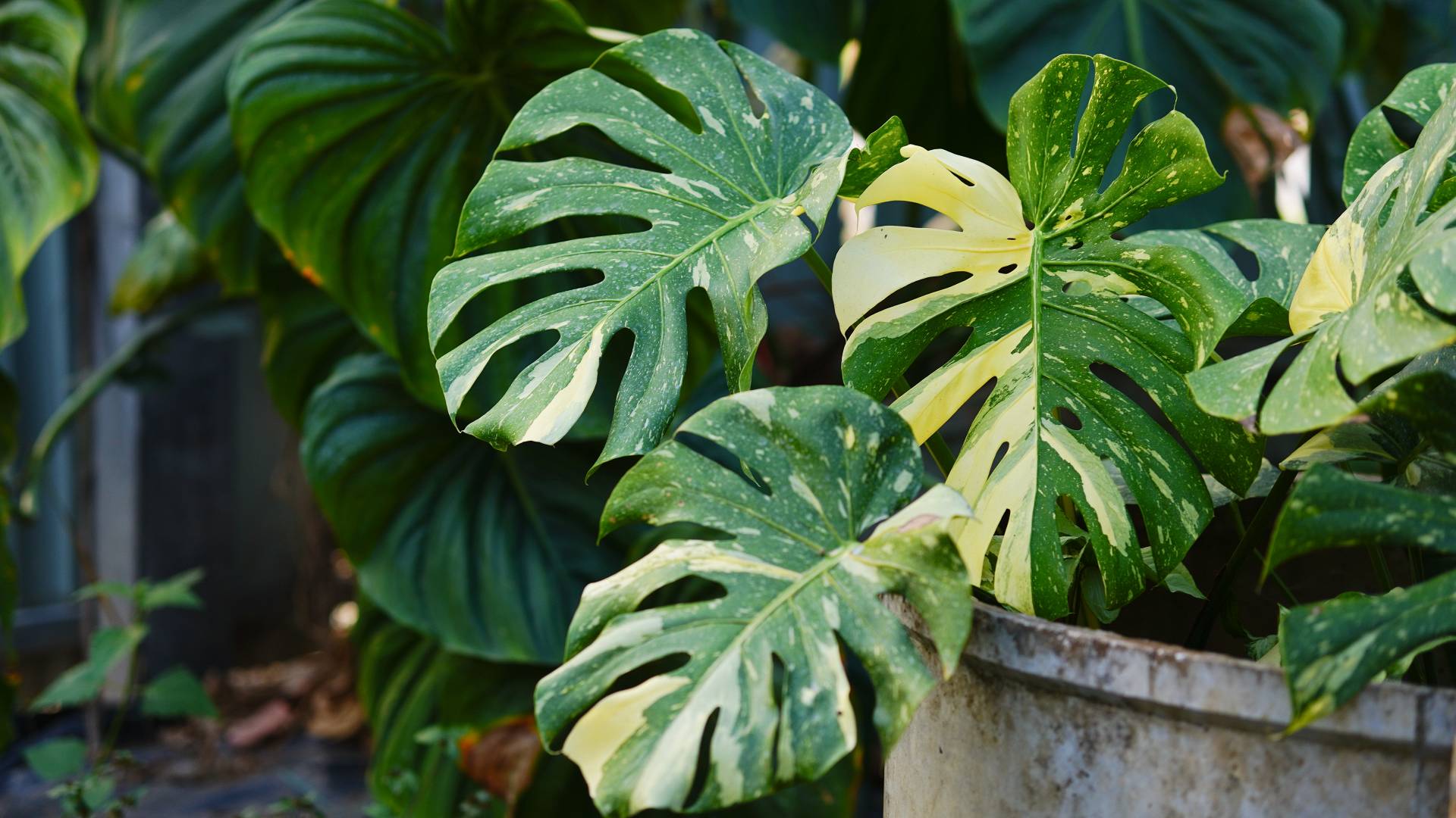 Monstera (Monstera deliciosa) ‘Thai Constellation’. Kolekcionāru šķirne, vēl pirms dažiem gadiem vienu augu varēja nopirkt par 200 eiro. Šobrīd gan cena krietni zemāka, taču augs joprojām nav plaši pieejams. Neparasta hibrīdšķirne ar stabilu variegāciju – monsteras lapas nekļūst ne pavisam zaļas, ne baltas. Viegli kopjama, prasības līdzīgas kā citām monsterām – jālaista, kad puķu podā augsne izžuvusi līdz pusei, vēlams nodrošināt daudz gaismas. Šķirnei raksturīgs neliels attālums starp lapām, tā izskatās kuplāka nekā citas monsteras. Lēnaudzīga, taču labos apstākļos aug liela, tāpēc piemērota plašām, gaišām telpām. Jau laikus jādomā par stabilu, izturīgu balstu un iespēju to nostiprināt pie griestiem.