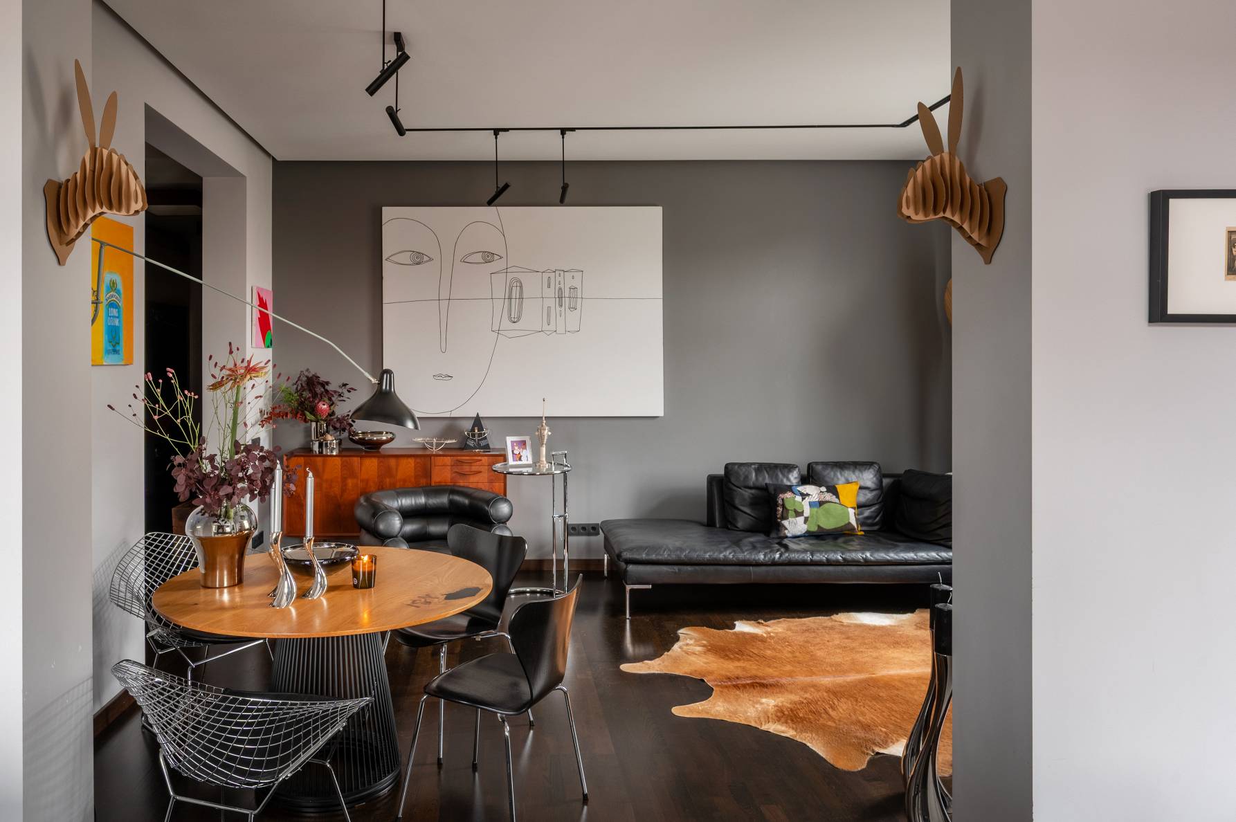 Pārsteidzoša ir arī mēbeļu kolekcija. 60. gadu kumodes, kādas ir vairākās dzīvokļa istabās, Antra uzgāja dāņu izsolē Catawiki. Arī ādas sofa un slavenās dizaineres Eilīnas Grejas oriģinālais klubkrēsls un galdiņš ir no turienes.