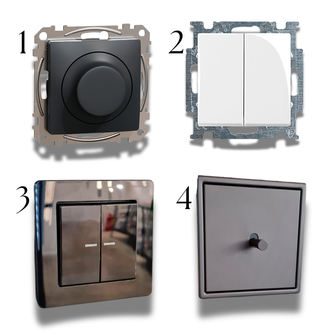 Slēdžu klāsts ir plašs, sākot no dažādu krāsu un tekstūru plastmasas variantiem līdz gaismas slēdžiem ar metāla, piemēram, nerūsējošā tērauda, misiņa vai alumīnija, pārklājumu. Taču ir divi pamata principi, pēc kuriem tiek izvēlēts viens vai otrs gaismas slēdzis, – izturība un estētika.