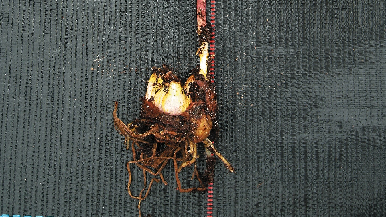Ar to biežāk slimo siltumnīcā audzētās lilijas, jo slimības izraisītājai sēnei Fusarium patīk siltums. Saknes un sīpola pamatne pūst, zvīņlapas kļūst brūnas un atdalās, apakšējās lapas dzeltē. Inficētos augus no augsnes var viegli izraut. Slimību ir grūti apkarot, taču no tās var izsargāties, lilijas neaudzējot ilgu laiku vienā vietā.