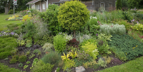 Radot savu dārzu, ievēroju vairākas pamatlietas. Pirmā – veidoju dobju formu un apdobes, kas tās atdala no zāliena. Otrā – dārzu papildinu ar augu kompozīcijām podos. Trešā – stādījumi dobēs ir diezgan blīvi, turklāt ievēroju sezonalitāti, lai vienu ziedēšanu nomaina cita un ziemā dobi rotā skujkoki. Ceturtā – dobi iekopju pa kārtām: kā pirmos pie malas stādu skujkokus un tūjas, veidojot zaļu fonu un aizsegu no vējiem, pēc tam graudzāles, košumkrūmus un visbeidzot puķes.