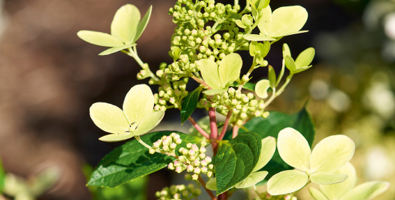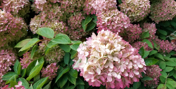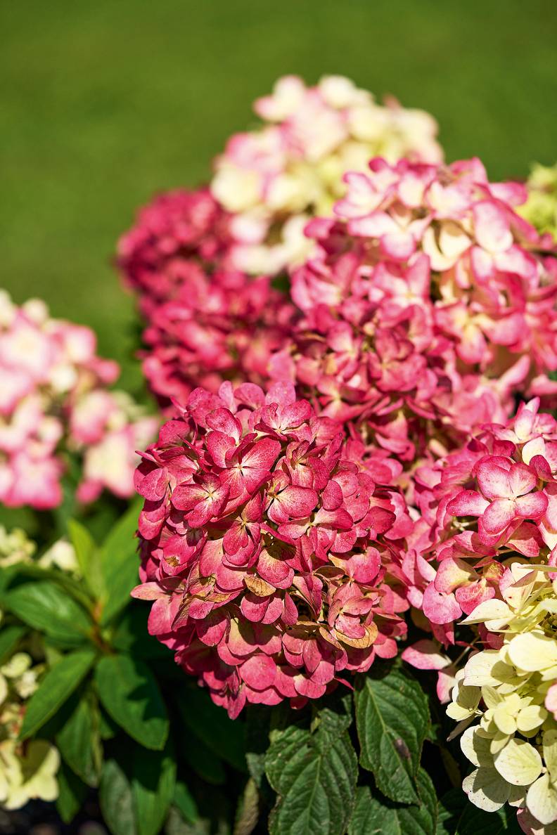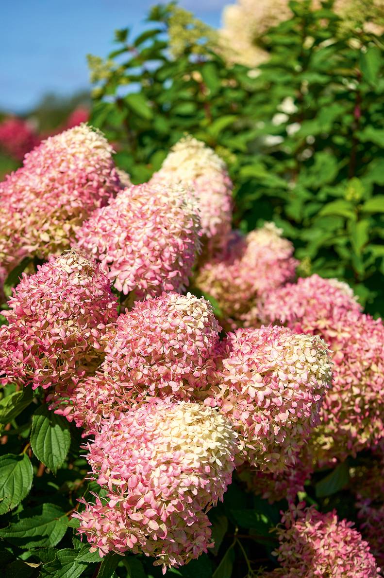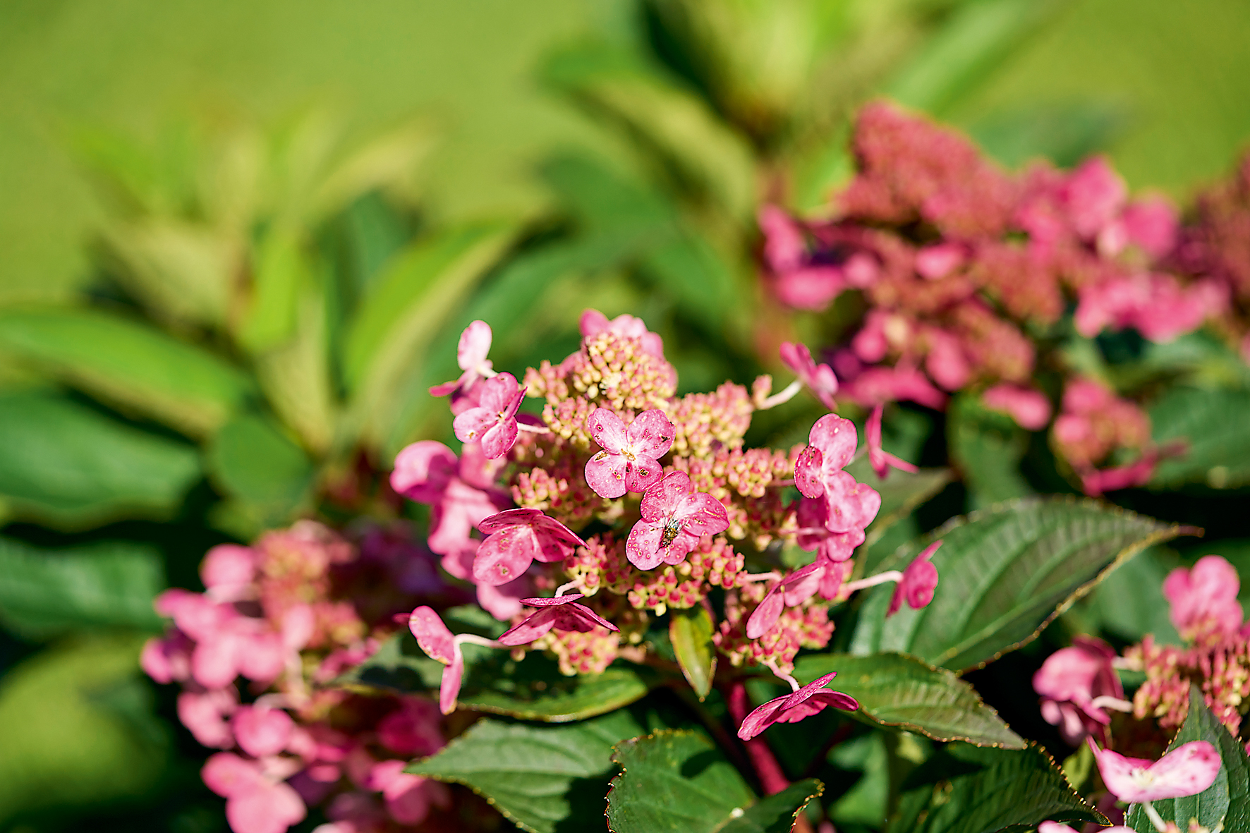 Foto: Gvido Kajons‘Raspberry Pink’. - ‘Touch of Pink’. Kompakts augums, tikai 0,8–1 m. Ziedi sākumā krēmbalti, bet vēlāk iegūst skaistu rozā toni un izskatās kā perlamutra. Palielie sterilie ziedi gandrīz pilnīgi nosedz fertilos, tomēr kopumā ziedkopa izskatās viegla.