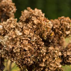 Principā zāģu skaidas hortenzijām ir labas, pirmajā gadā vispār nekādas vainas – sadalās, satrūd un paskābina augsni. Taču ar laiku skaidas sablīvējas tik ļoti, ka saknes vairs neelpo un hortenzija mokās. Arī augam pievadīt barības vielas nevar. Tāpēc mēs mulču liekam klāt substrātam. Ja lapas kļūst dzeltenīgas, tas nozīmē, ka mulčas trūdēšanas process paņem no augsnes slāpekli un augam tā pietrūkst. Tātad, ja jutīšu, ka to vajag papildus, iedošu. Uzberot uz saknēm mizu mulču, tā pirmkārt, izskatās estētiskāk, otrkārt, ir gaisa caurlaidīga, veido spraugas, un hortenzija var gan elpot, gan saņemt barības vielas. Mizu mulču drīkst likt pie sakņu kakla.