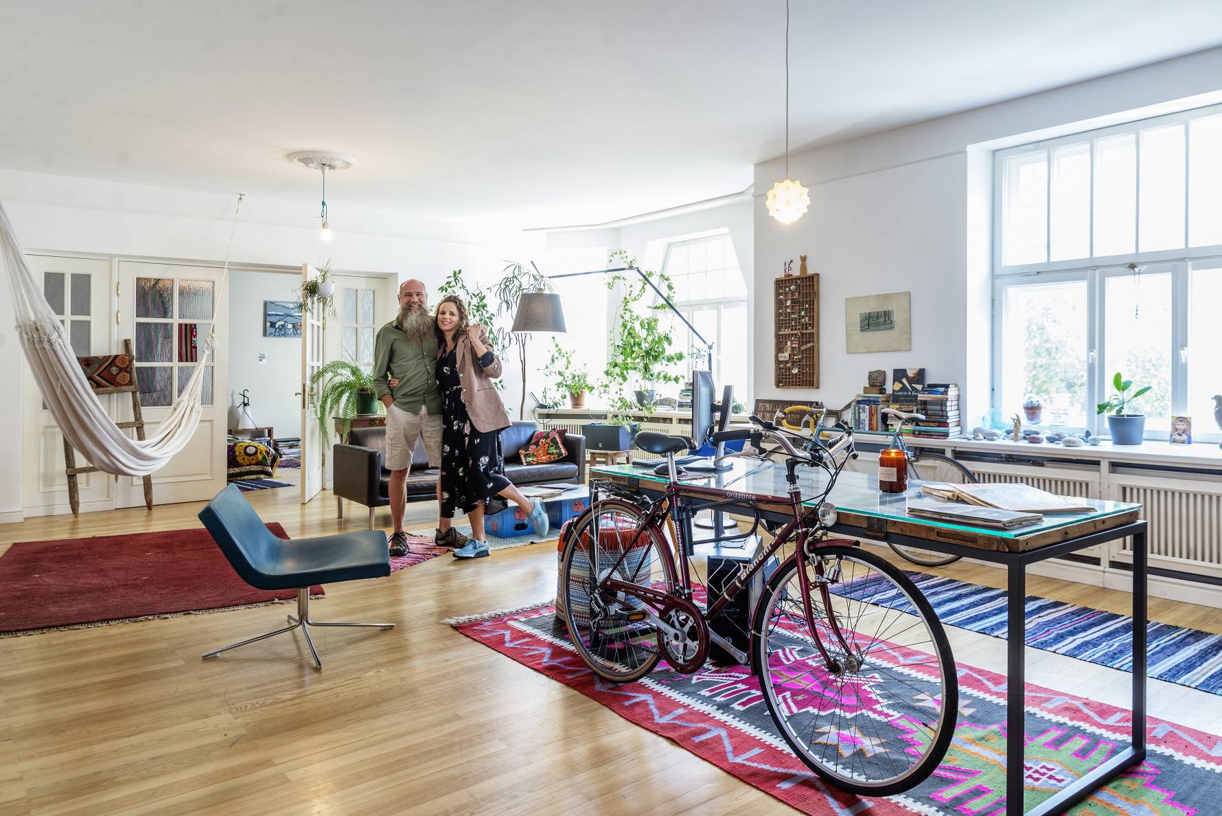 Ieva un Maiks dzīvo plašā un gaišā trīsistabu dzīvoklī Rīgā, Stabu ielā. Pa dzīvokļa logiem gan sētas, gan ielas pusē redzami koki. Tie, tāpat kā zaļie telpaugi, rada tuvību dabai, kas ir urbānās dzīves mierinājums.