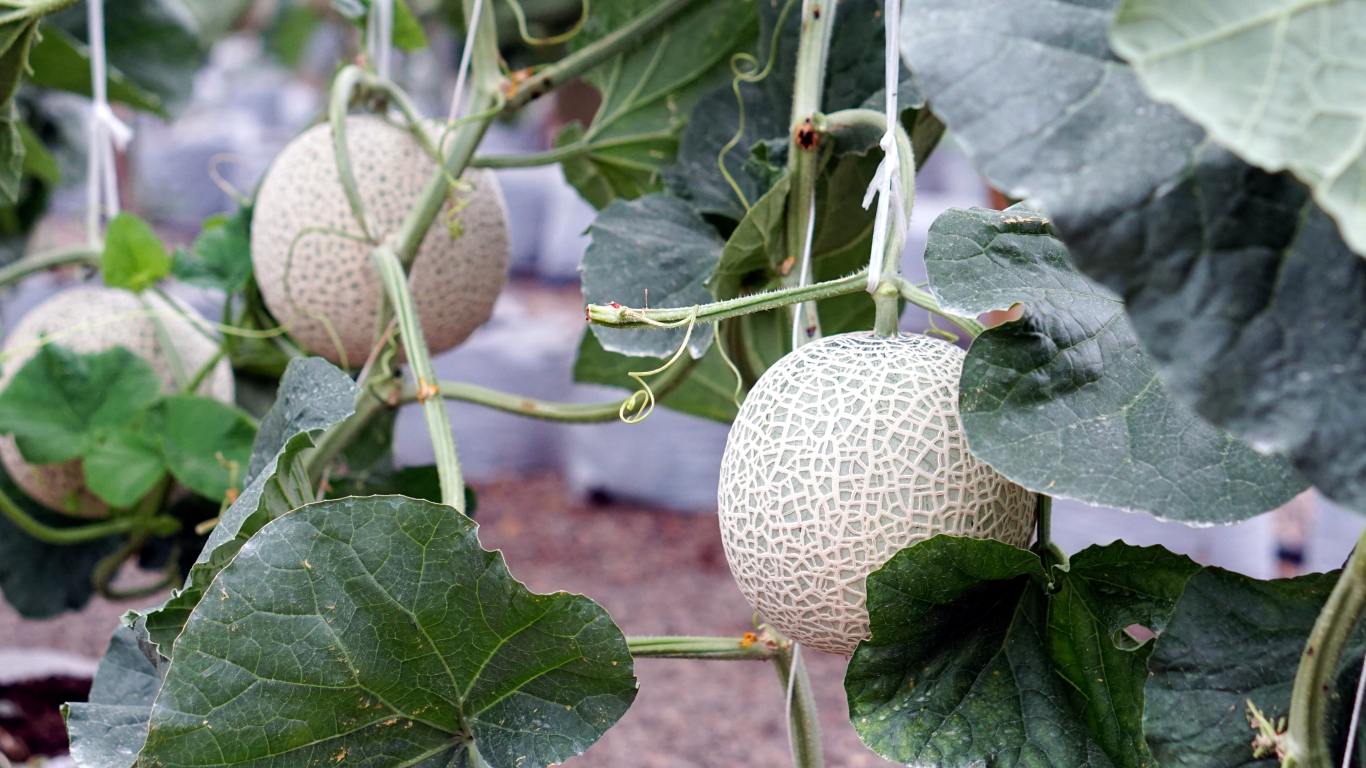 - Siltumnīcā melones var audzēt gan klājeniski uz zemes, līdzīgi kā laukā, gan uzsietas vertikāli, līdzīgi gurķiem. Tad tās aizņems arī mazāk vietas un siltumnīcā varēs izvietot vairāk augu.