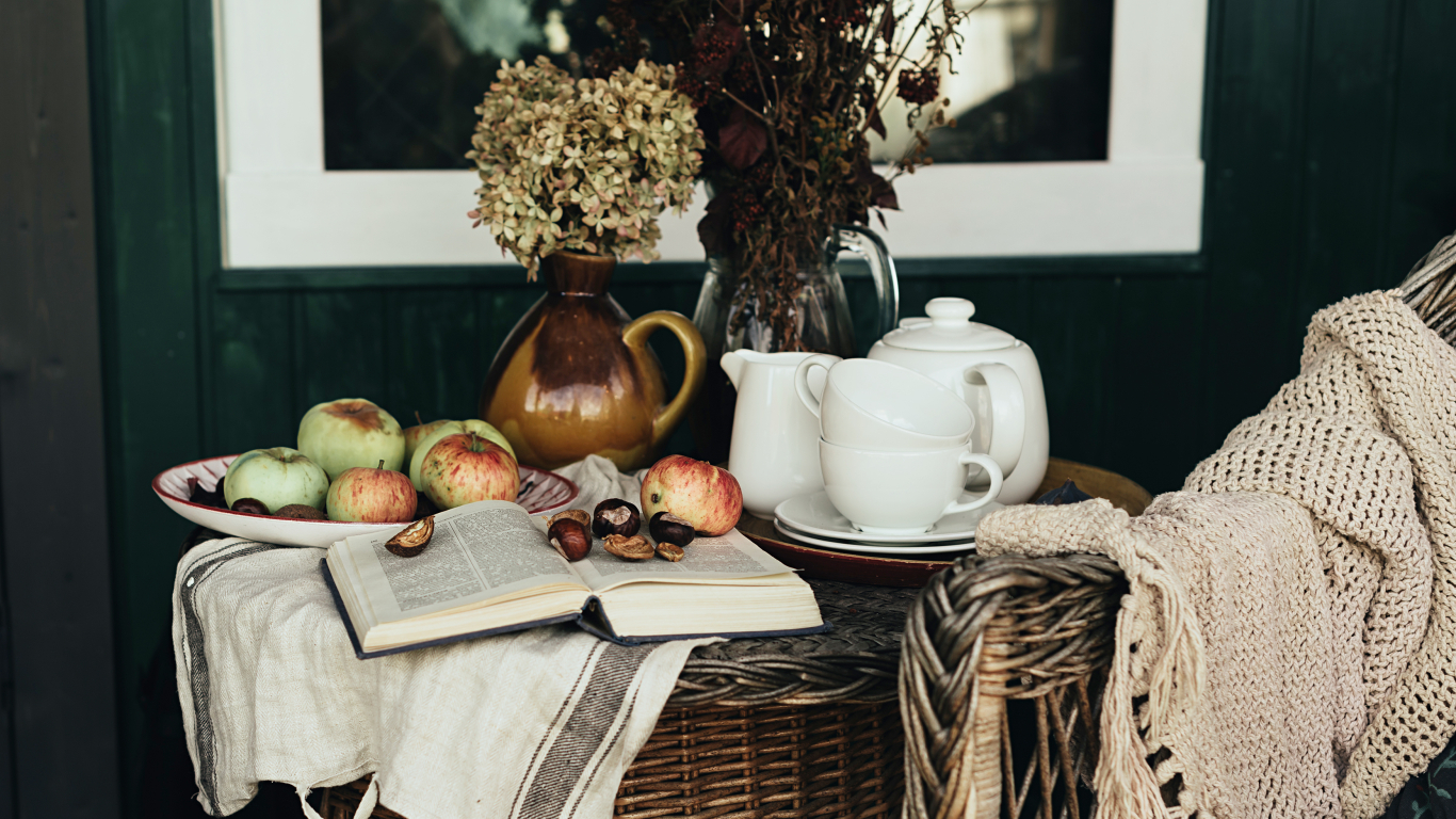 - Jāizvēlas balts vai dzeltens galdauts. Galdu jārotā ar pīlādžu zariem, rudens lapām un ogām, āboliem, zīlēm un kastaņiem.