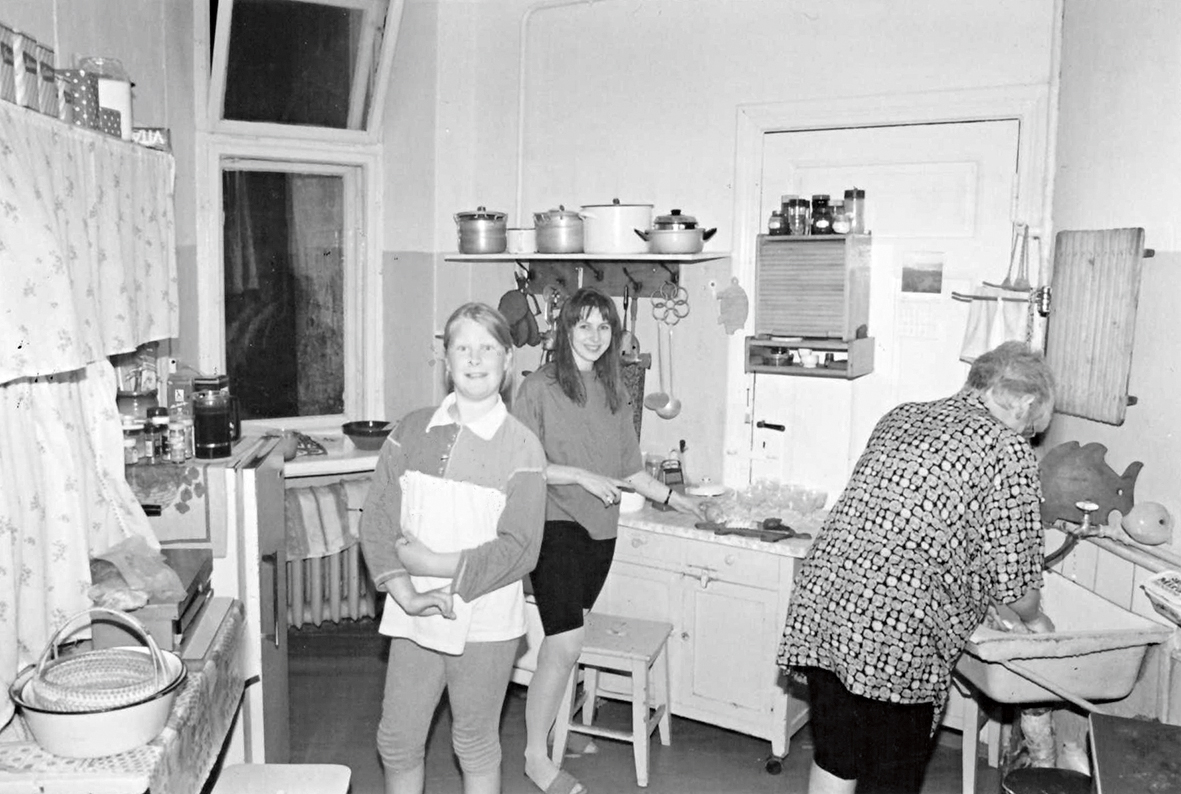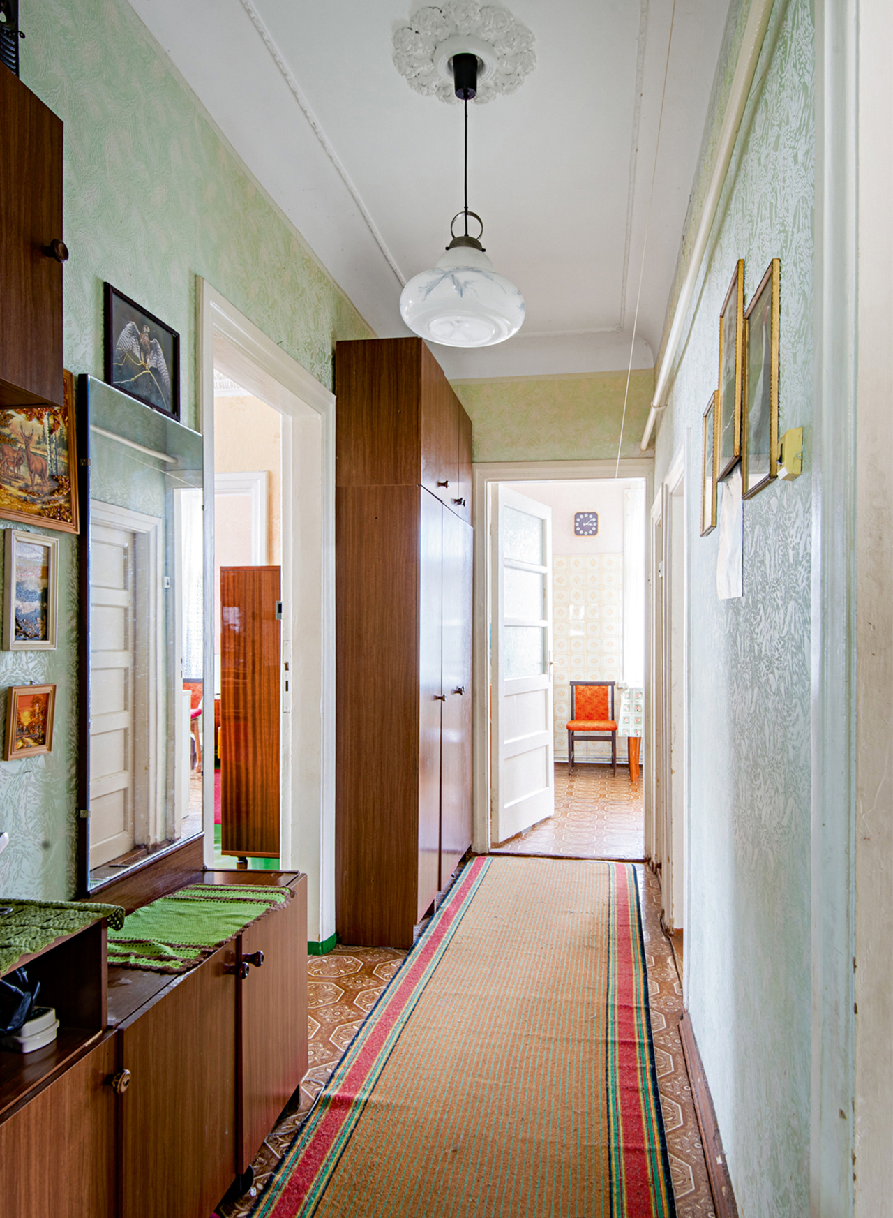 Par spīti apstākļiem, savu telpu mēs centāmies iekārtot glīti. Žurnālus saskatījusies, lūdzu, lai manā mazajā istabiņā tētis, kuram bija zelta rokas, uzbūvē gultu otrajā stāvā, lai pirmajā līmenī būtu plašāka dzīvojamā telpa. Mūsu istabās bija glītas mēbeles, aizkari izgludināti, lai kristu smukās krokās. Taču kaimiņu priekšstati par estētiku atšķīrās. Mammītei bija šoks, kad kaimiņiene viņu priecīga sauca skatīties, cik skaisti viņa izremontējusi klāt nākušo mirušā kaimiņa istabu – parkets bija nokrāsots ar brūno eļļas krāsu…