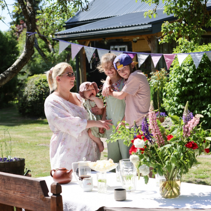 Kopumā, kā paši saka: «Te darbu un plānu visai dzīvei, visu laiku esam kustībā, laika kašķēties nav nemaz.» Gan Dacei, gan Raitim ir pieauguši bērni un mazbērni, kuri šajās mājās ir vienmēr mīļi gaidīti. Pirmajos kopīgajos Ziemassvētkos jau izdevies uzburt skaistus kopā būšanas svētkus vēl neiekārtotajā viesistabā. Galdi klāti uz stalažām, taču tieši tādēļ tas īpaši palicis siltā atmiņā, jo jāprot baudīt arī procesu.