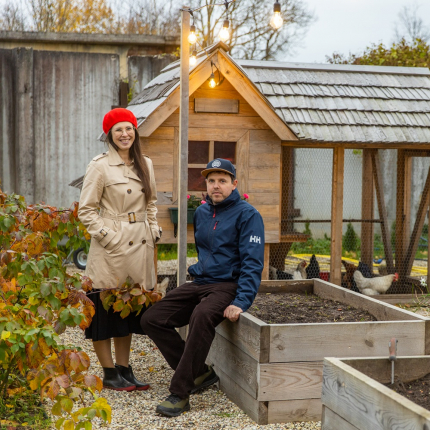 - Te saimnieko Dace Stalidzēna un Raitis Stirna – Dace ir Latvijas Radio producente un redaktore, kas savu darbu lielākoties veic attālināti, bet Raitis strādā Latvijas gaisa satiksmes Drošības dienestā, un profesijas specifika ļāvusi dzīvi saplānot tā, ka pieticis laika darboties pie mājas.