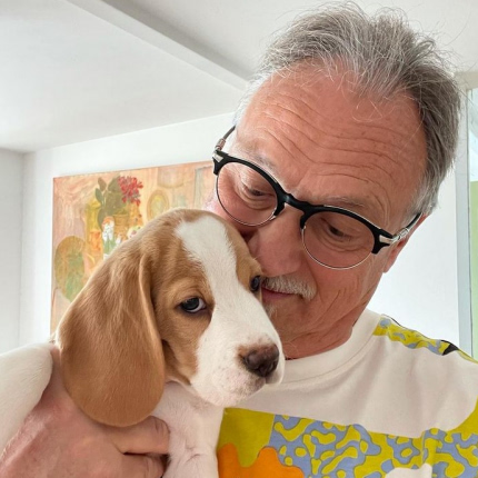 Pie suņa viņš ticis tikai pirms pieciem gadiem, jo to ļoti vēlējusies sieva Elīna. «Kad daudzus gadus no vietas katru rītu dzirdi frāzi, ka mums vajag suni, gribot negribot ar šo domu sāc aprast. Sapratu – tik tiešām, kādēļ liedzu mums šo prieku? Tāpēc Elīnai dzimšanas dienā uzdāvināju līgumu, kurā bija vairāki punkti. Pirmais – es izvēlos suņa šķirni, otrais – izvēlos suņa vārdu. Trešais – Elīna ved suni ārā un, ja suns mājās sadarījis nedarbus, aiz viņa vāc. Tas tiešām Elīnai nebija izdevīgs līgums, taču viņa to parakstīja nedomājot,» stāsta viņš.
