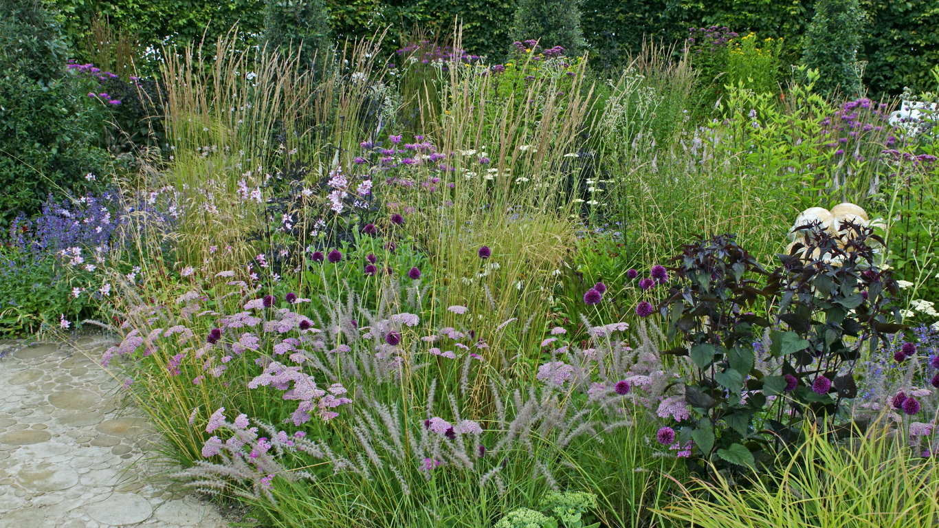 - Puķu dobē iederas izturīgas un ilgmūžīgas ziemcietes, kas neprasa īpašas rūpes, – salvijas, lavandas, kaķumētras, perovskijas, brūnvālītes, zilpodzes, vērmeles, ežziedes un gandrenes. Mitrākās vietās labi jutīsies arī vīgriezes un astilbes. Piejūras dārzā īpaši iederas daudzgadīgās zālveida ziemcietes jeb graudzāles, kas atgādina par kāpu tuvumu, – zilganās auzenes, grīšļi, kāpu kvieši, seslērijas. Plašākos dārzos labi izskatās miskantes un molīnijas. Dārzā iederas arī dabiskās pļavas zona. Lai tajā veidotos augu daudzveidība, var ievākt savvaļas augu sēklas no tuvējām pļavām un ceļmalām.