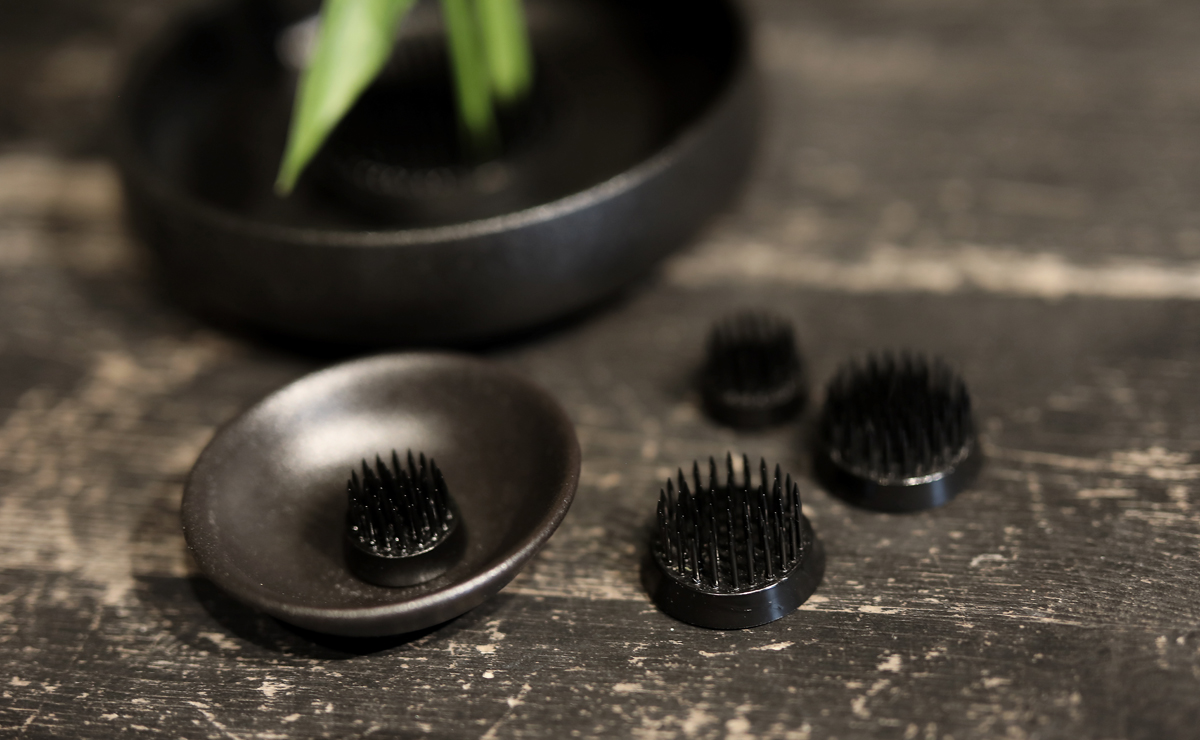 Kā tad izveidot savu ikebanu? Pirmkārt, vajadzēs kenzanu – mazu ezīti, kas palīdzēs noturēt ziedus. Tulkojumā tas nozīmē zobenu kalns, un uz šī kalna tad tiek spraustas puķes, zari, lapas un citi dabas materiāli.