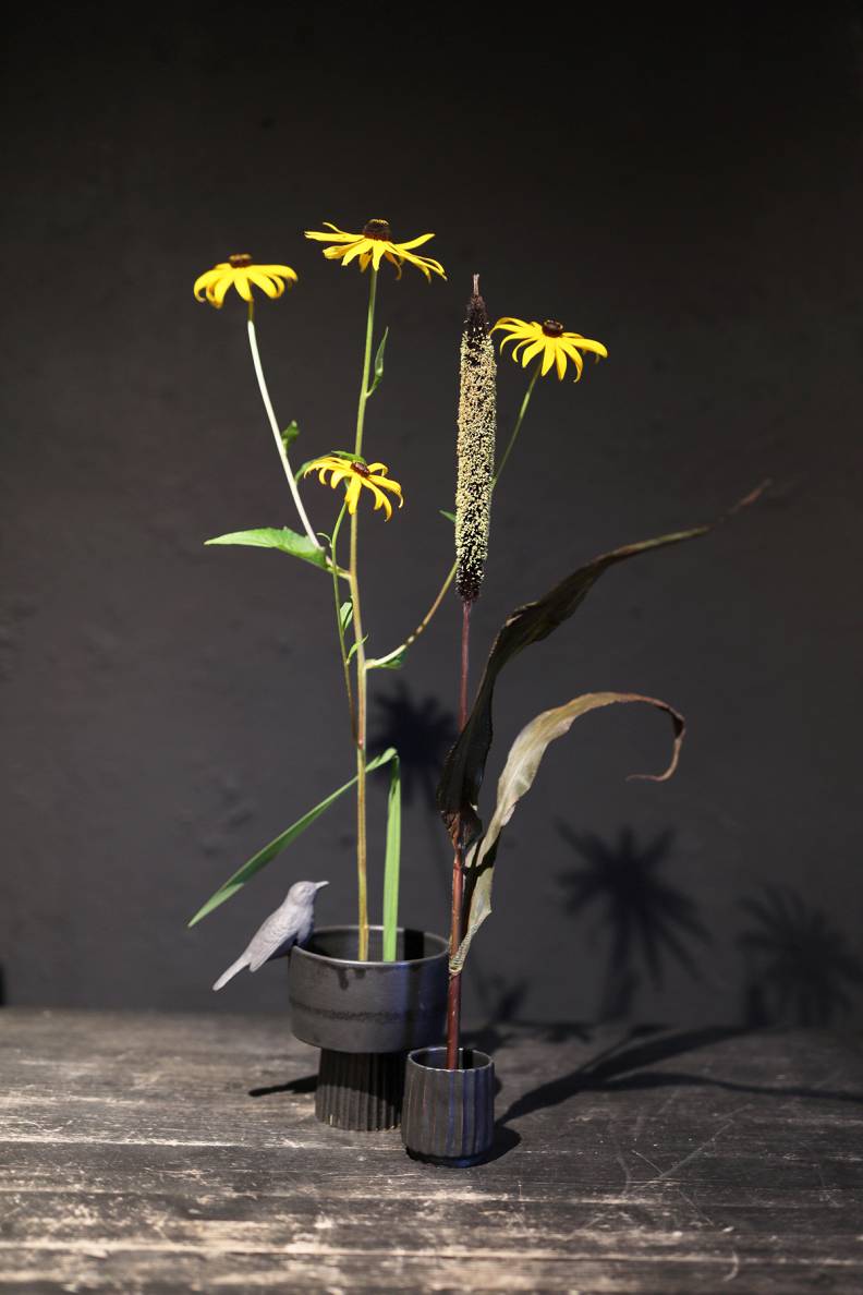 bet izaugusi līdz vairākām skolām un kļuvusi par neatņemamu Japānas kultūras sastāvdaļu. Šīs mākslas pamatā ir spēcīga saikne ar dabu, un tās pamatprincips ir dabiskums un vienkāršība. Protams, kā nodeva mūsdienu pasaulei ikebanā ienāk arī sintētiskie elementi, taču joprojām uzsvars ir uz dabā atrodamiem materiāliem. Es iesaku izmantot to, kas aug mūsu pašu zemē, un neaizrauties ar eksotiskiem augiem. Katrā ziņā, ja ir ziedu sezona, tad tā jāizmanto. Pavasarī lieliski izskatīsies ikebana ar ziedošu ķiršu vai plūmju zaru, bet rudenī Latvijas daba piedāvā ļoti daudz – pīlādžus, irbenes, dālijas, asteres, krizantēmas un krāsainās rudens lapas. Un, gluži tāpat kā aicinu veidot ikebanu no vietējiem resursiem, rekomendēju arī izvēlēties Latvijā ražotus traukus.»